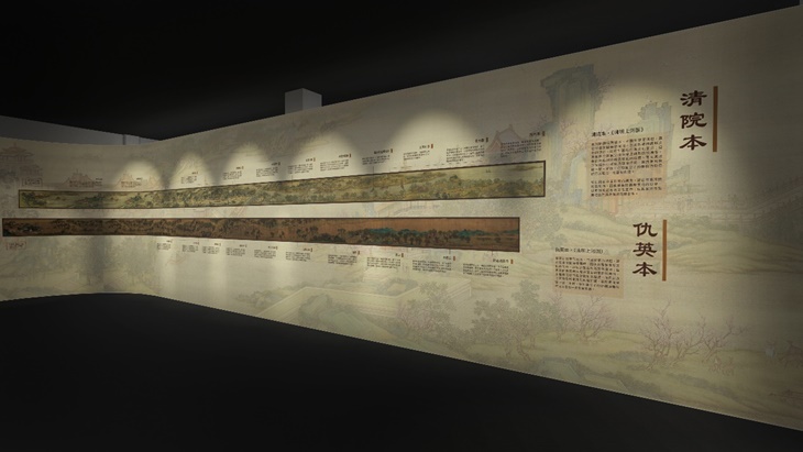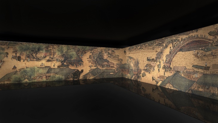 本次展覽融合了傳統藝術與現代科技,利用投影技術讓這幅傳世名作中的人、車、樹、水都動起來了,並分為白天與夜晚,每隔4分鐘日夜循環,畫作呈現得更加生動、逼真,觀眾仿佛穿越時空走進畫中,身臨其境地感受800年前世界之都的繁華景象。