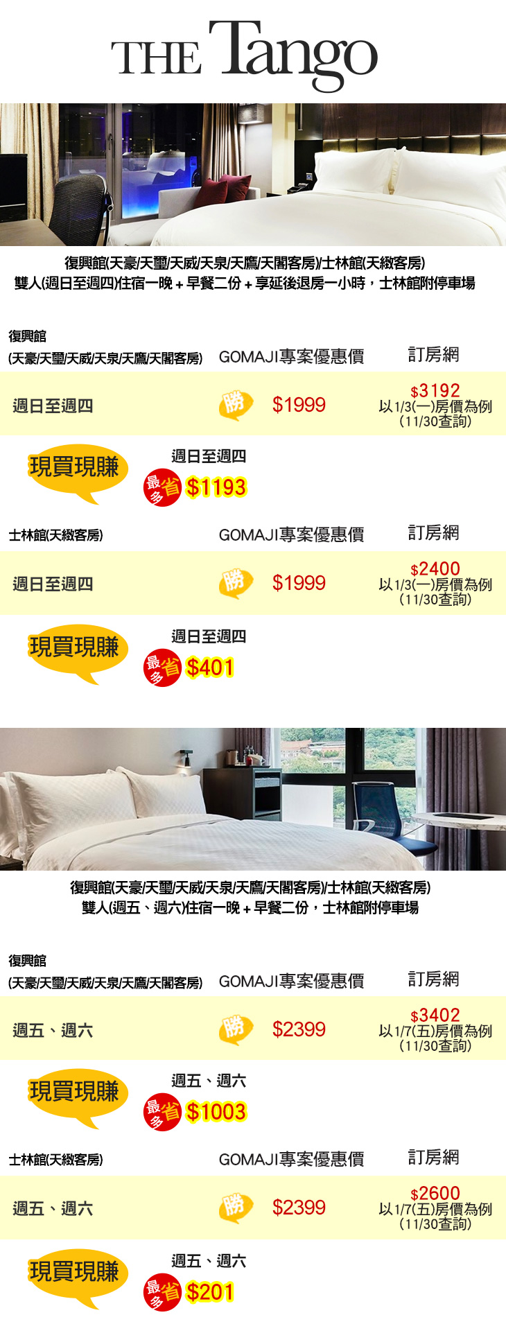 請您放慢步伐、緩和匆忙急促的心,跟著THE TANGO的腳步,尋找專屬於您自己的時尚心旅!位在松山區復興北路上的【天閣酒店 台北復興館】,傳承TANGO跨界美學,在科技與時尚中光鮮交融,在新世代無暇服務的新思維裡再次突破!