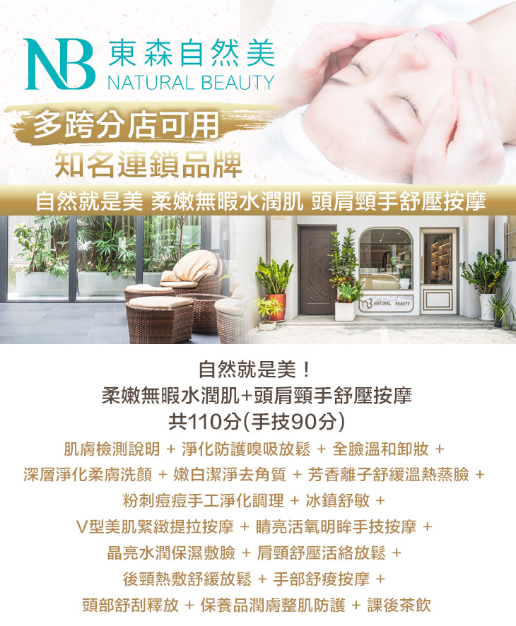 自然就是美!柔嫩無暇水潤肌+頭肩頸手舒壓按摩共110分(手技90分)