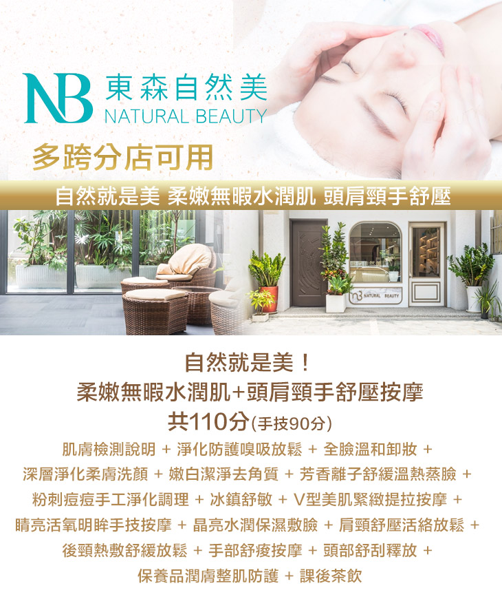 自然就是美!柔嫩無暇水潤肌+頭肩頸手舒壓按摩共110分(手技90分)