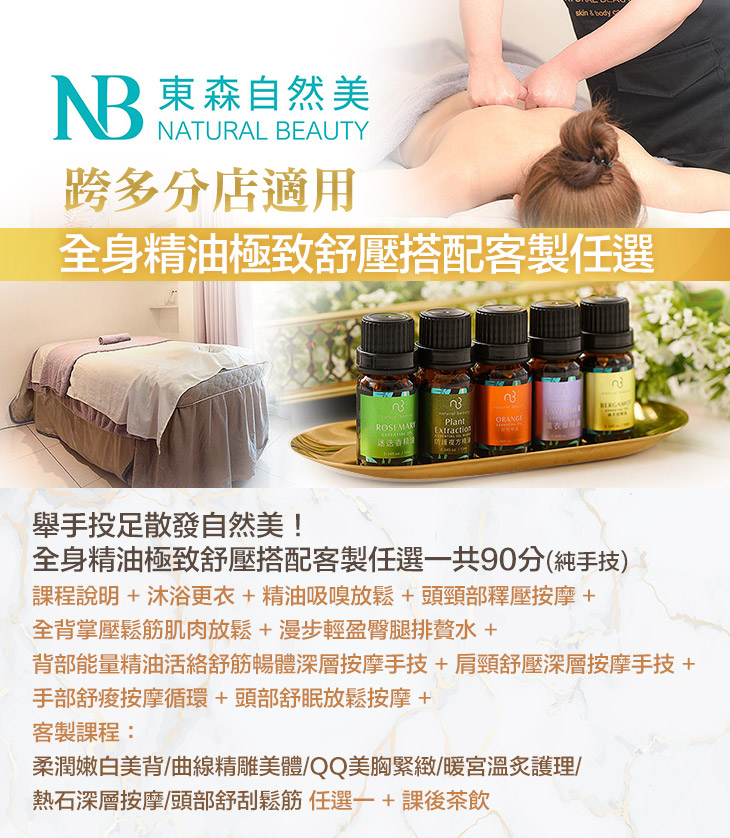 舉手投足散發自然美!全身精油極致舒壓搭配客製任選一共90分(純手技)