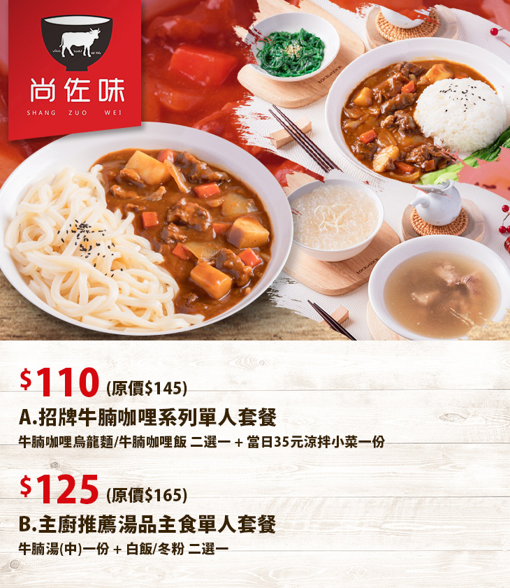 〈牛腩咖哩烏龍麵/牛腩咖哩飯 二選一 + 當日35元涼拌小菜一份〉