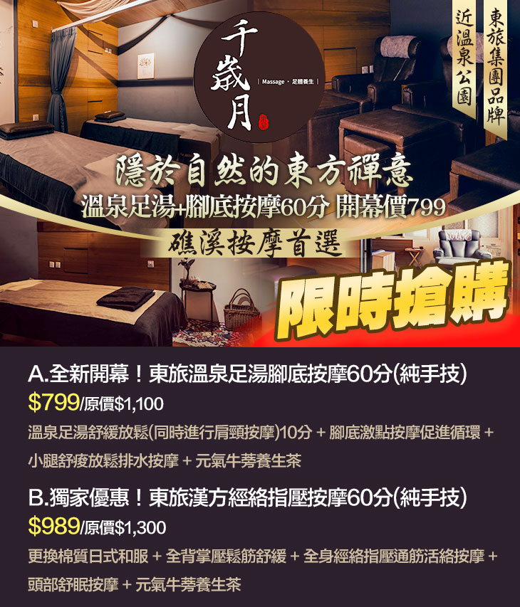 A.全新開幕!東旅溫泉足湯腳底按摩60分(純手技)