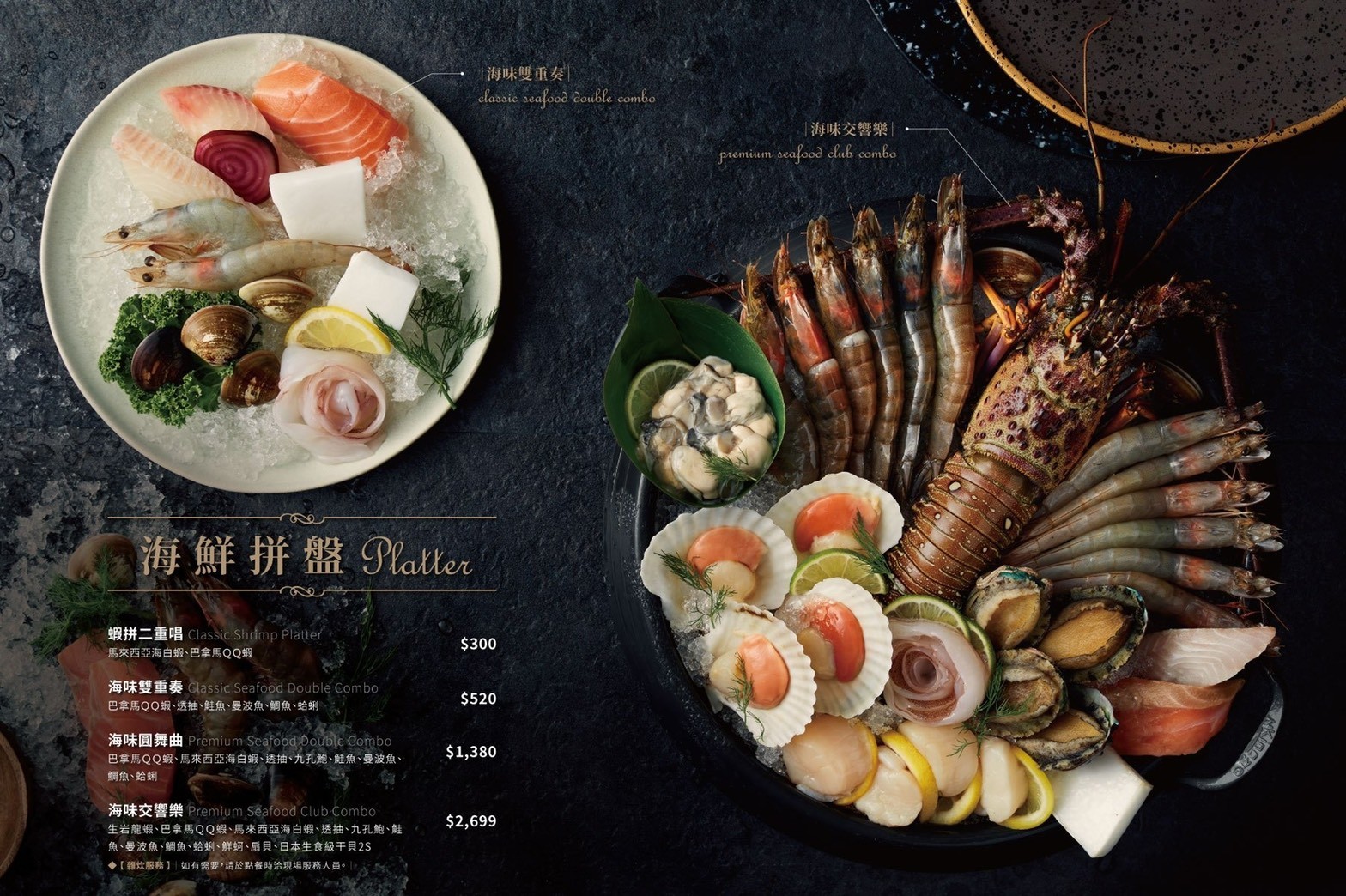 頂級澎湃海鮮拼盤-【海味交響樂】,瞧那奢華的用料與精緻的擺盤,一端上桌,便讓人看得目不轉睛、垂涎欲滴!每日新鮮備料、產地直送的海鮮品項,入鍋烹煮,散發天然的海底鮮香氣息、滿滿的濃醇精華!龍蝦肉質彈脆甘甜、蝦肉鮮美柔嫩、牡蠣更是肥美JUICY、鮑魚飽滿滑口、鮮魚脂香馥郁等,樣樣的新鮮度與美味程度都讓人驚呼連連~~~幸福指數簡直無限攀升!