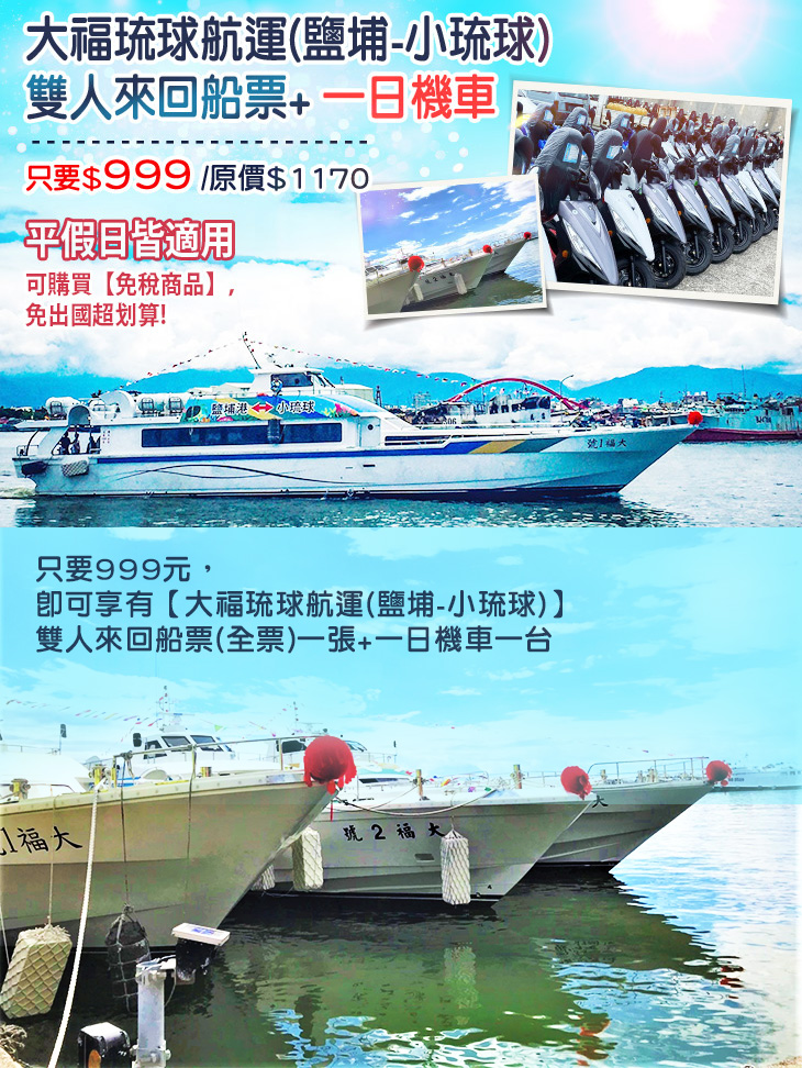 【大福琉球航運(鹽埔-小琉球)】感謝麻吉們熱烈搶購,已全數賣光光。