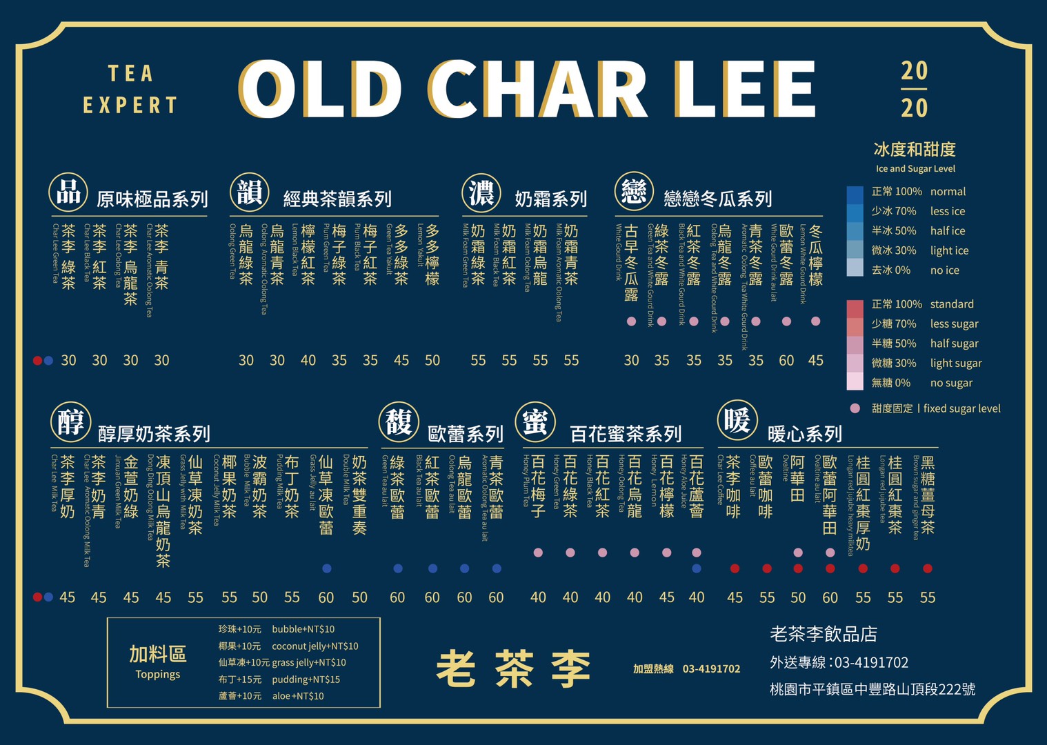 有冠軍茶烘焙技術加持的【老茶李飲品店】,出身自擁有優質茶園與頂尖烘焙技術的【一邱田茶行】,自產自銷的茶葉,品質精挑細選有保證,不僅栽培茶葉的過程專業細心,後續的烘焙到沖泡,都擁有最頂尖的技術,讓上等茶葉不同凡響的茶香、底蘊,得以被發揮得淋漓盡致。