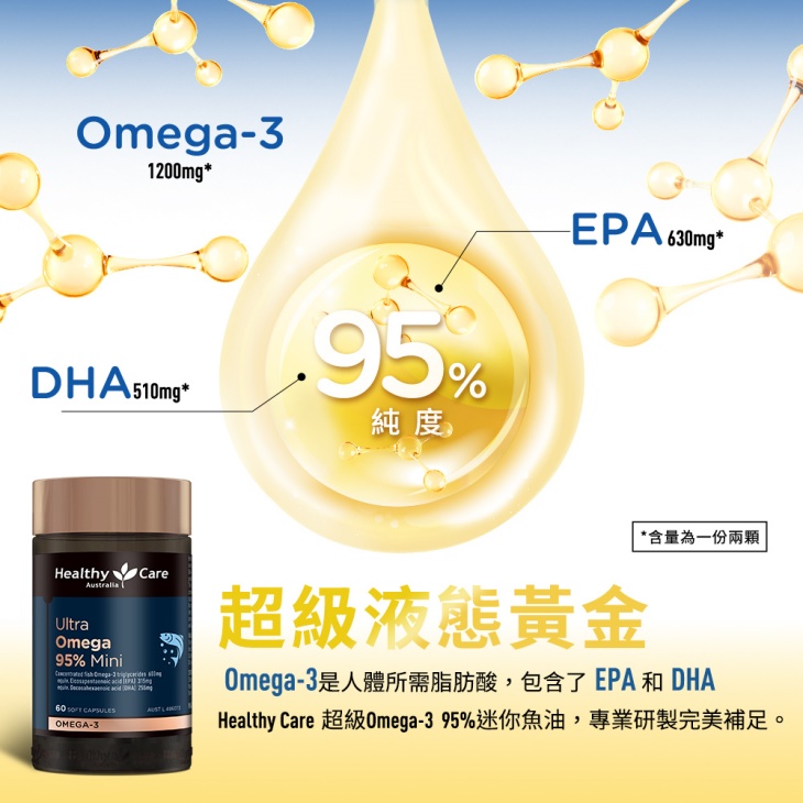 【Healthy Care】95加滿!魚油好朋油 | 超級 Omega-3 95% 迷你魚油膠囊 | DHP+EPA 達1140mg 1/2入(60顆/入),加贈HC 蜂膠牙膏 1入/2入(120g/入)