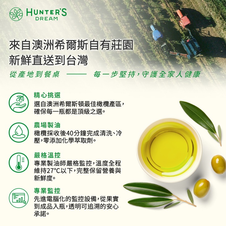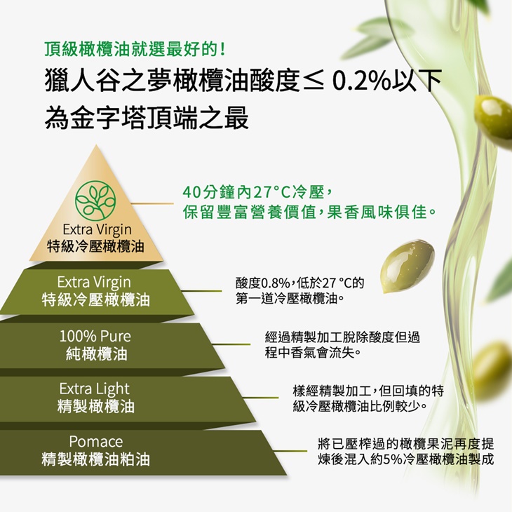★初榨橄欖油用途廣,日常煎煮拌都能使用,健康又安心。
