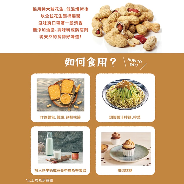 ★新鮮口感: 現壓抹醬保留了堅果最原始的油脂香氣,口感滑順且無負擔~