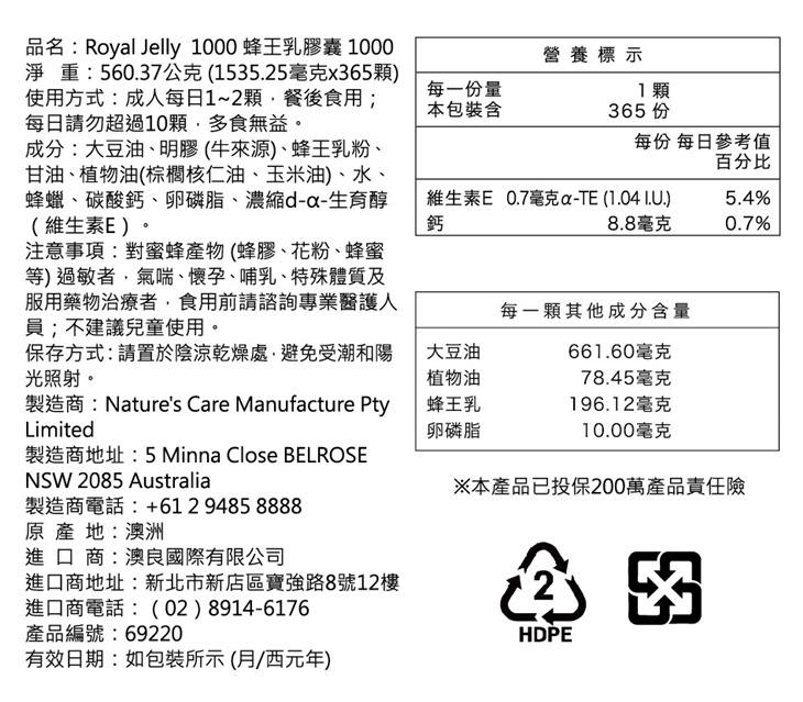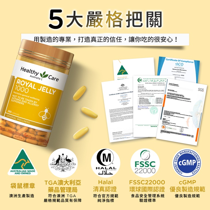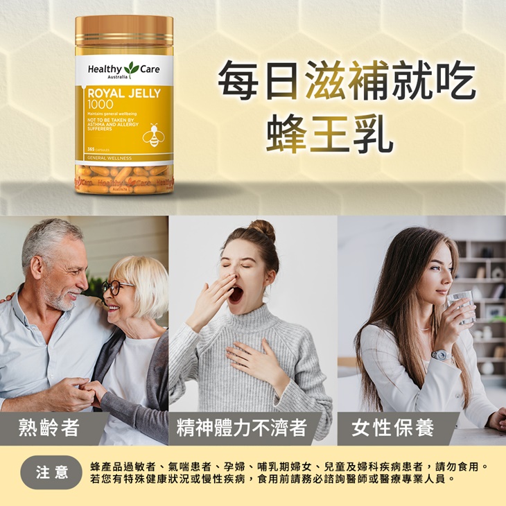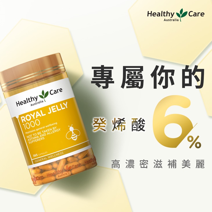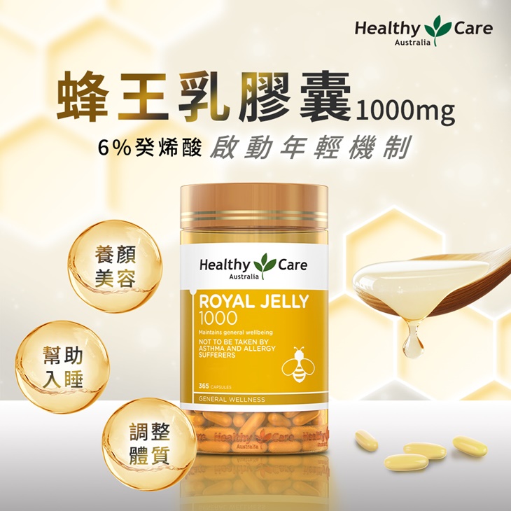 【Healthy Care】每天只要6元 | 蜂王乳膠囊1000 1入(365顆/入) (效期2026/11/30),加贈澳洲蜂肽皺效緊緻霜 1入(30g/入)