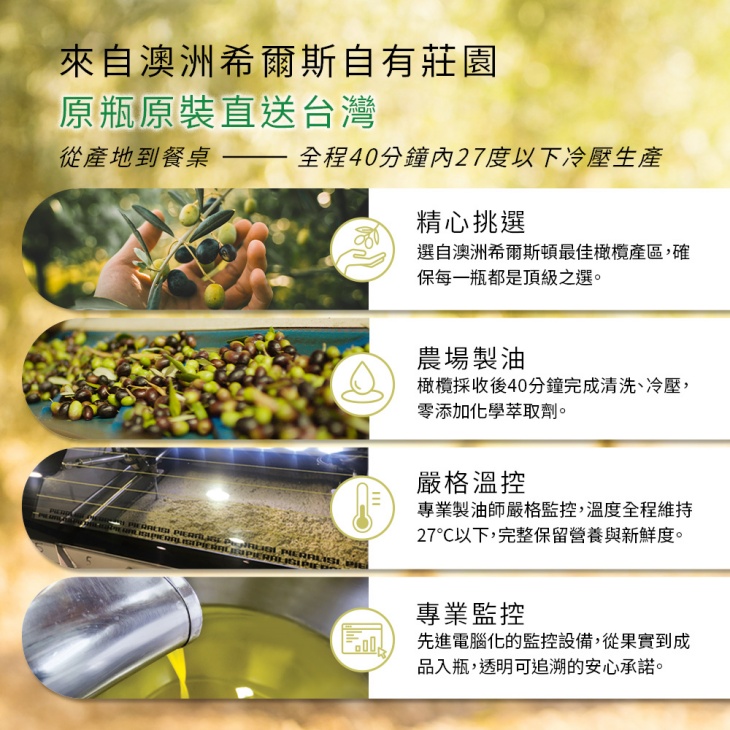 特級初榨冷壓橄欖油12入(500ml/入) (效期至2027/9/15),箱購加贈頂級早摘 1入(100ml/入) (效期至 2027/12/18)