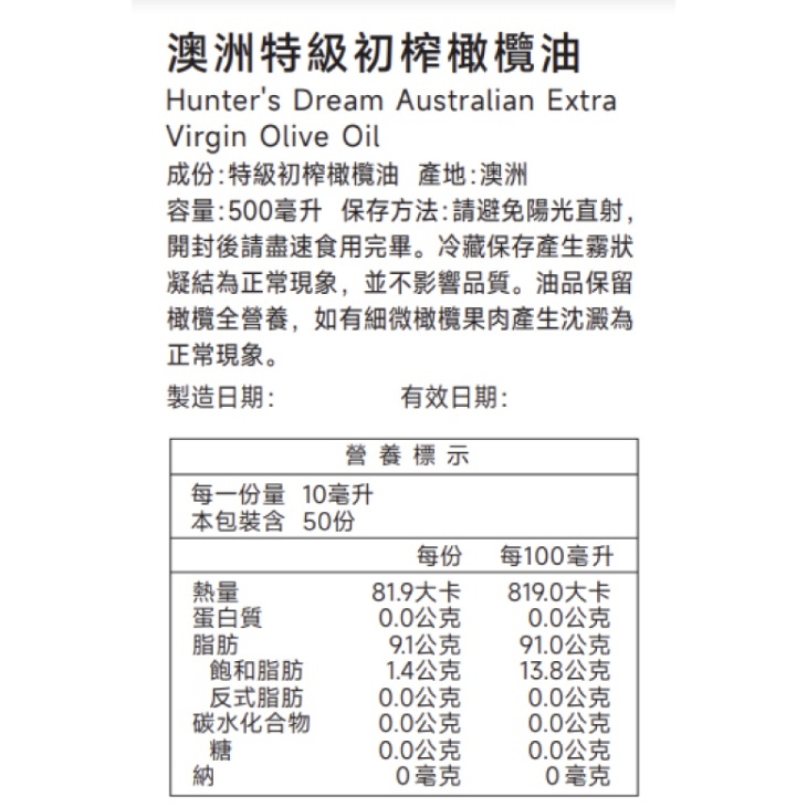 【Hunter's Dream】特級初榨冷壓橄欖油12入(500ml/入) (效期至2027/9/15)