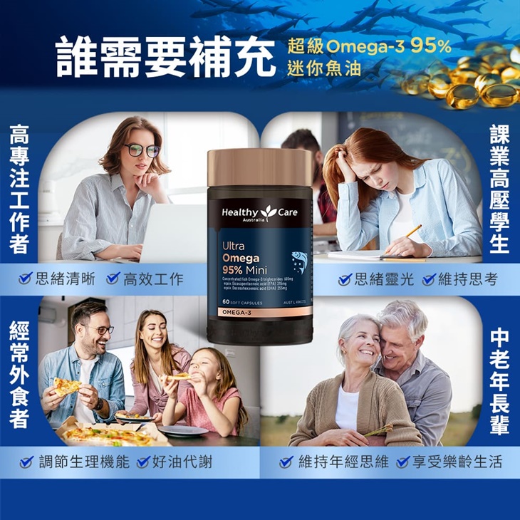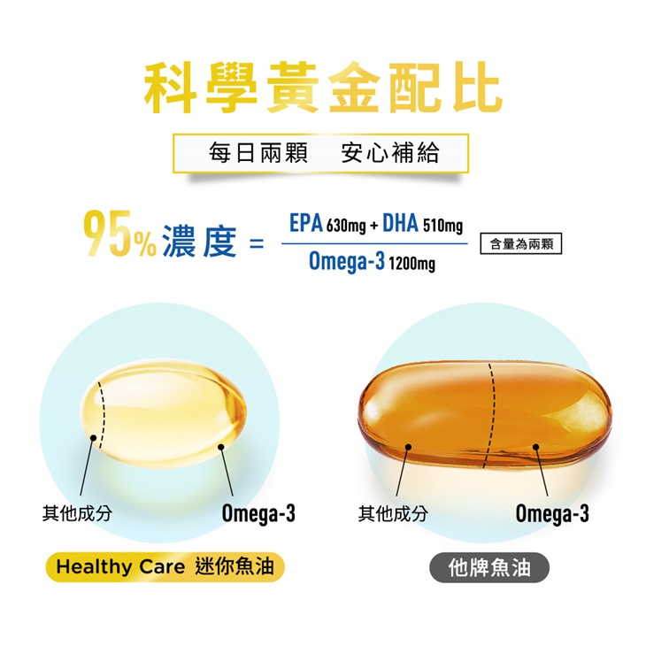 【Healthy Care】超級 Omega-3 95% 迷你魚油膠囊 | 每日2顆,外食族必備營養品★限時獨贈12%,輸入「999-fish12」再折 $200,平均 $766 起/瓶,任選方案送HC維生素E乳霜!