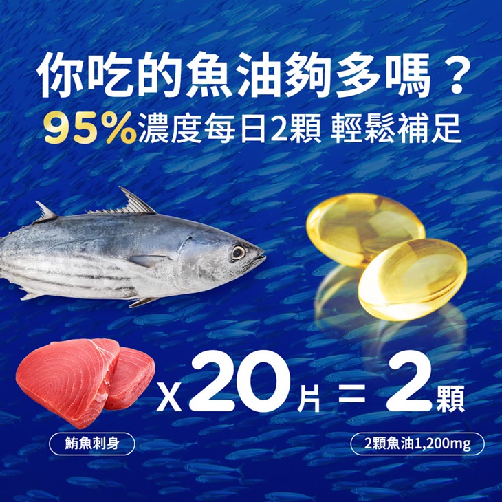 ★95%高純度Omega-3:每日2顆小膠囊好吞不卡,輕鬆補足關鍵營養~