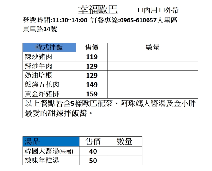 幸福歐巴 韓式炒泡麵年糕拌飯專賣店(大里店)
