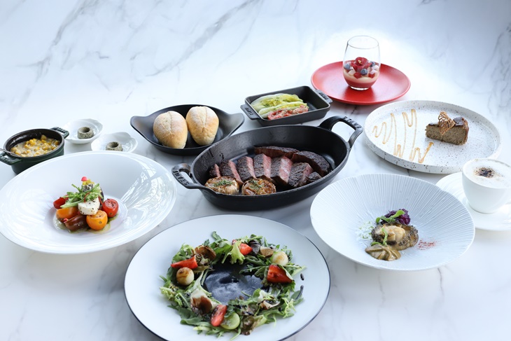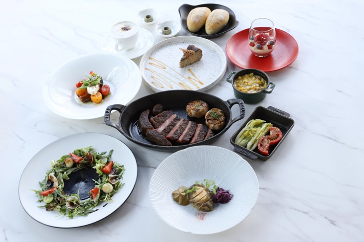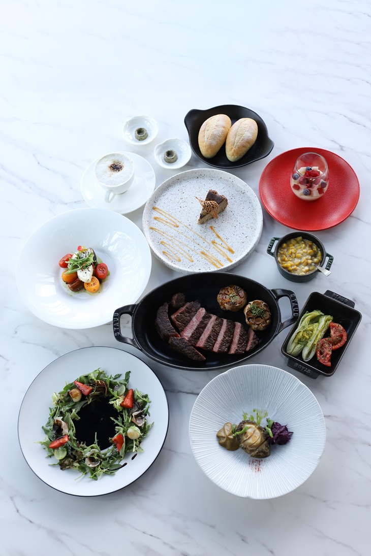 〈餐前麵包二份 + 開胃小點二份 + 日本F1肋眼牛排12oz一份 + 湯或沙拉二份 + 副餐二份 + 甜點二份 + 咖啡或茶二份〉