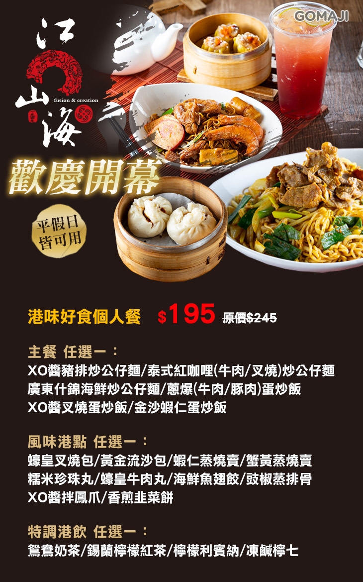江山海特地聘請資深香港師傅,以道地的口味及真誠的心為您現點現做各式港點滿足您的胃!多樣化美味料理,讓您回味無窮,經典的港式風味您非嚐不可,期待您的光臨!現在不用飛出國也能擁有澎湃饗宴囉!