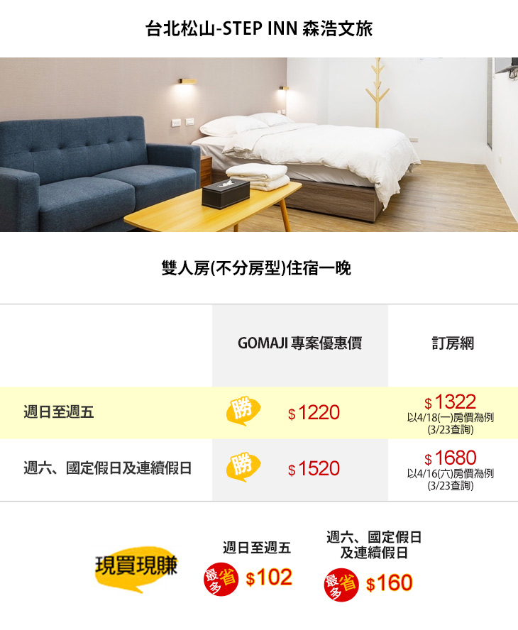 【台北松山-STEP INN 森浩文旅】感謝麻吉們熱烈搶購,已全數賣光光。