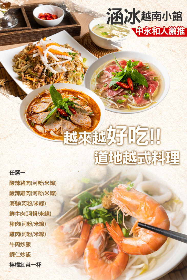 風味獨特的越南料理,一直都是深受台灣人青睞的異國美食,【涵冰越南小館】提供口味正宗、道地的越南料理,家常的口味,把越南的餐桌搬到您的眼前,讓您不用出國,也能透過舌尖體驗越南在地的美食文化,度過彷彿置身國外的精心時光!