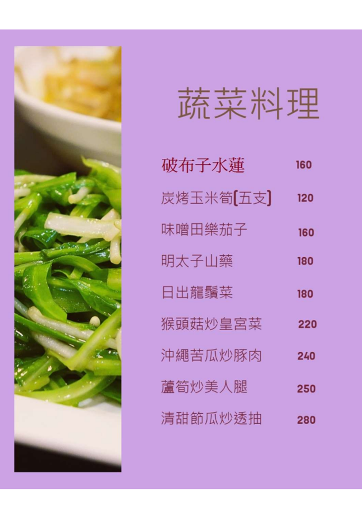 ※菜色內容依季節時令調整,實際菜色、價目依現場提供為主。
