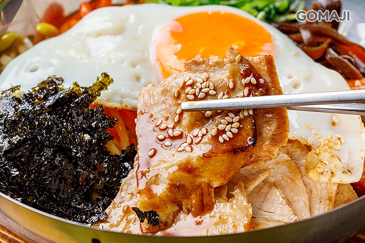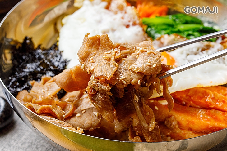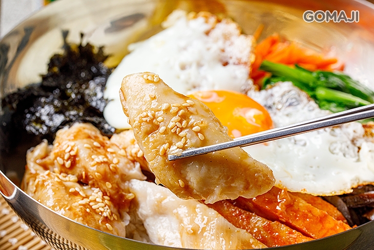 重磅登場的松阪豬香氣十足,光聞到香氣就讓人口水直流!新鮮的肉質帶有勻稱的油花,搭配上以獨門配方調配的秘製醬汁後,整體口感變得更濃香美味,熱愛韓式拌飯的您絕對可以吃得心滿意足!