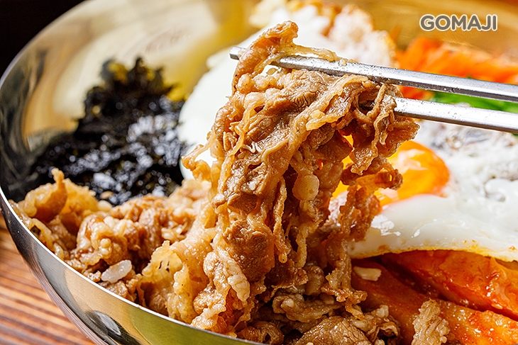 在白香的米飯上大方放入牛五花、蔬菜、紅蘿蔔、海苔絲、荷包蛋等食材點綴,趁熱攪拌,熱騰騰的香味帶動食慾,享用時還可嚐到肉的彈嫩、菜的清香,以及荷包蛋流出的甜美蛋液,口感鹹香夠味,香氣四溢,讓人不愛上都難呢!