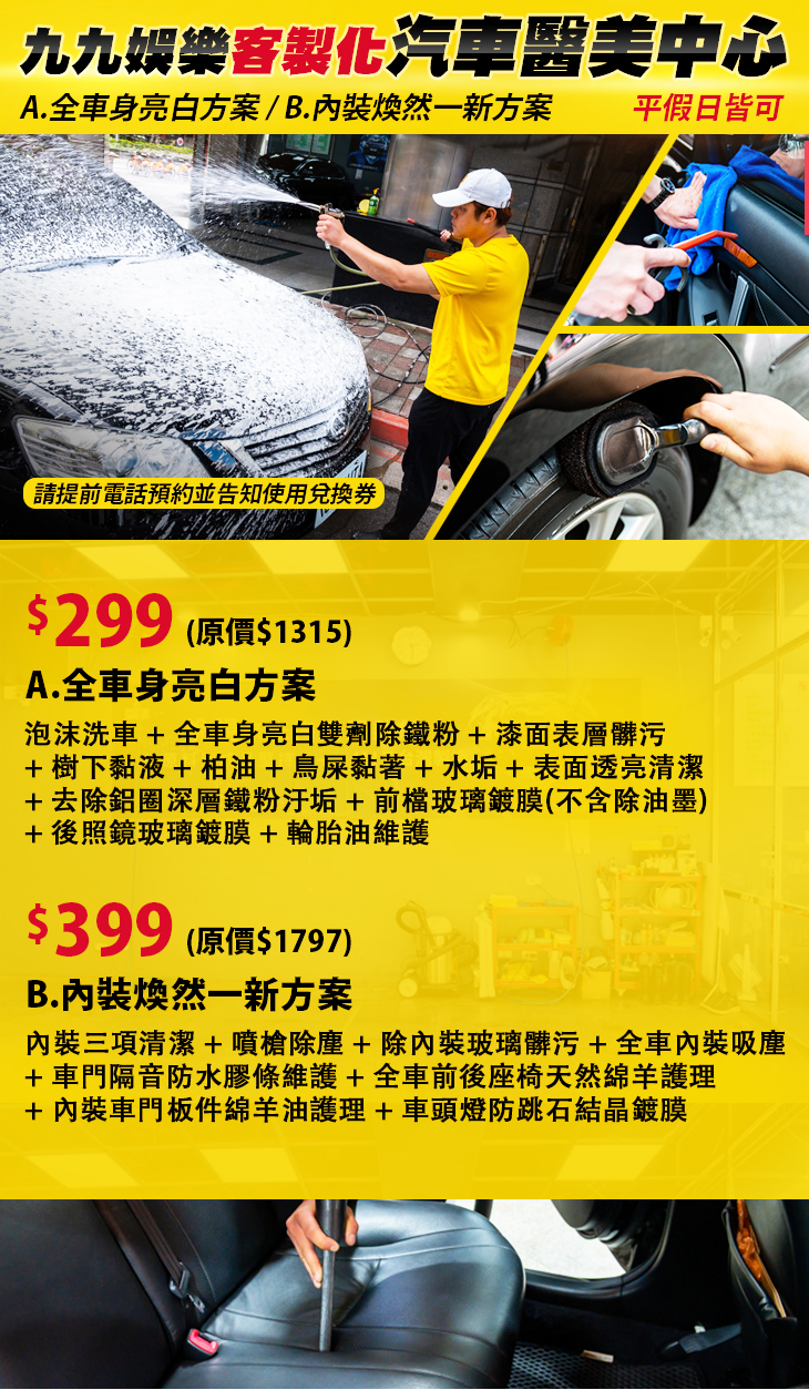 【九九娛樂客製化汽車醫美中心(信義店)】感謝麻吉們熱烈搶購,已全數賣光光。