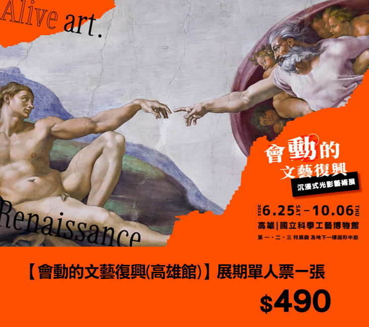 集結文藝復興時期300年最代表性的畫作,包括文藝復興三傑—達文西、拉斐爾、米開朗基羅與波提且利、卡拉瓦喬、喬托、提香等24位大師200幅畫,委託獲得美國葛萊美、泰利獎等國際大獎的製作團隊以原寸仿真、AR介紹及540°環場投影沉浸式體驗,搭配立體環繞音效等不同手法,提供觀眾兼具藝術性、教育性、娛樂性和社交性的多重享受的藝術饗宴,今年暑假您絕對不能錯過喔!