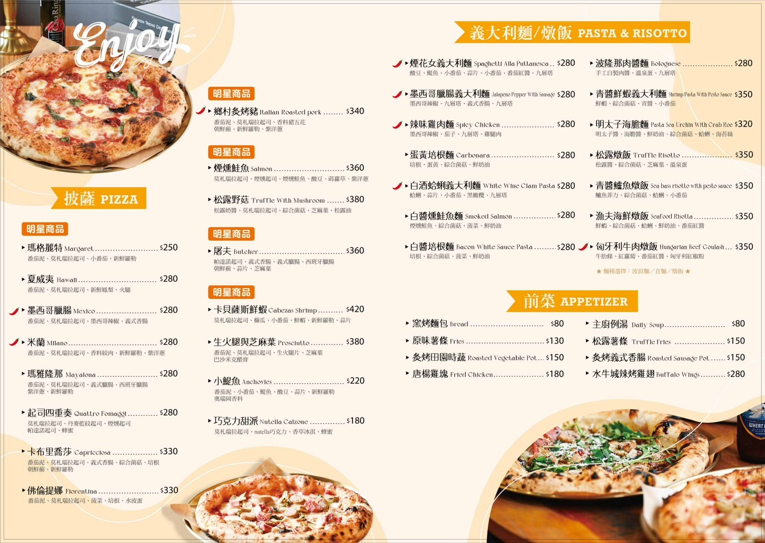 想要吃好吃的披薩跟義大利麵,卻都找不到喜歡的嗎?那就跟著麻吉的腳步,來品嚐這家專製披薩、義大利麵的好餐廳吧!不但用餐環境乾淨明亮舒適、店內服務人員態度親切,餐點更是美味!且店內披薩種類豐富,身為披薩控絕對不能錯過啊!如果是第一次來,對披薩口味不熟悉也沒關係,老闆很貼心地在菜單上註記每種口味主要的食材有哪些,喜歡吃披薩的麻吉們,趕快揪朋友一起來品嚐吧!