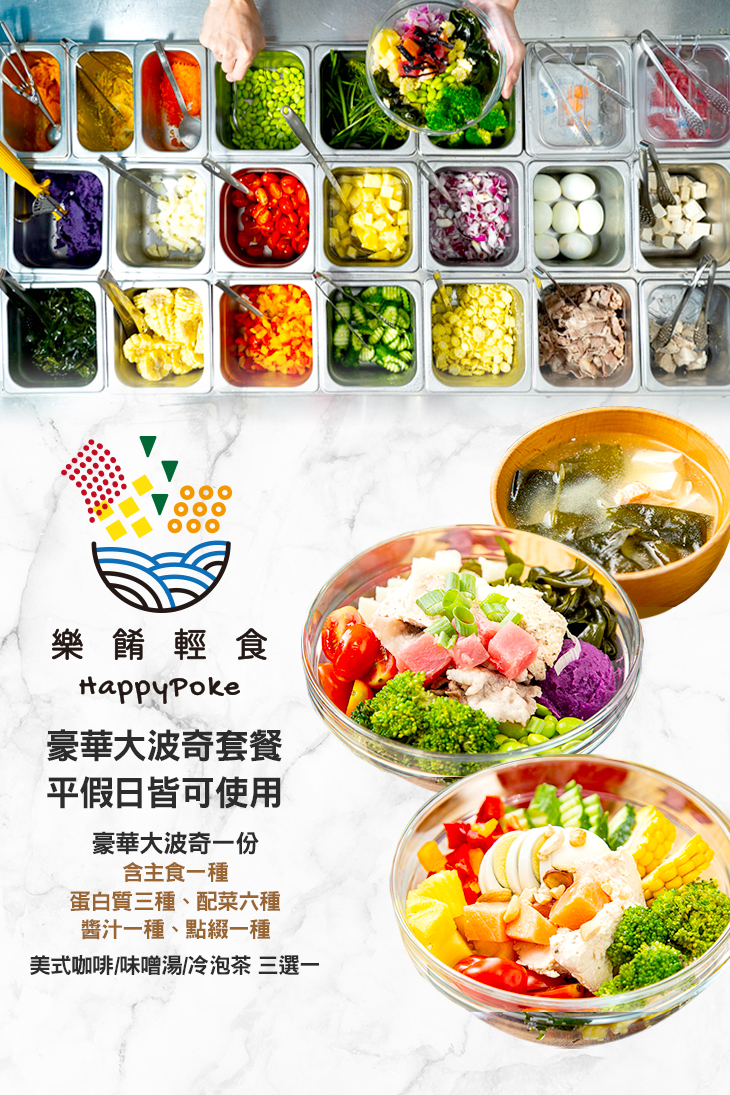 第一家結合夏威夷風格以及日式生魚片的波奇料理專賣店!隱身巷弄內的精緻的健康餐盒、低卡水煮餐!主打保留食材最原始的風味與營養、擺盤色彩繽紛、讓人愛不釋口的美味,為您的健康層層把關~除了可選擇健康的紫米、糙米、生菜三種作為主食,還可以自行搭配自己想吃的蛋白質與蔬菜,選擇豐富多樣,份量飽滿,保證讓您吃得心滿意足!讓【樂餚輕食。波奇專賣 HappyPoke】成為您增肌減脂的最佳好夥伴吧!!!