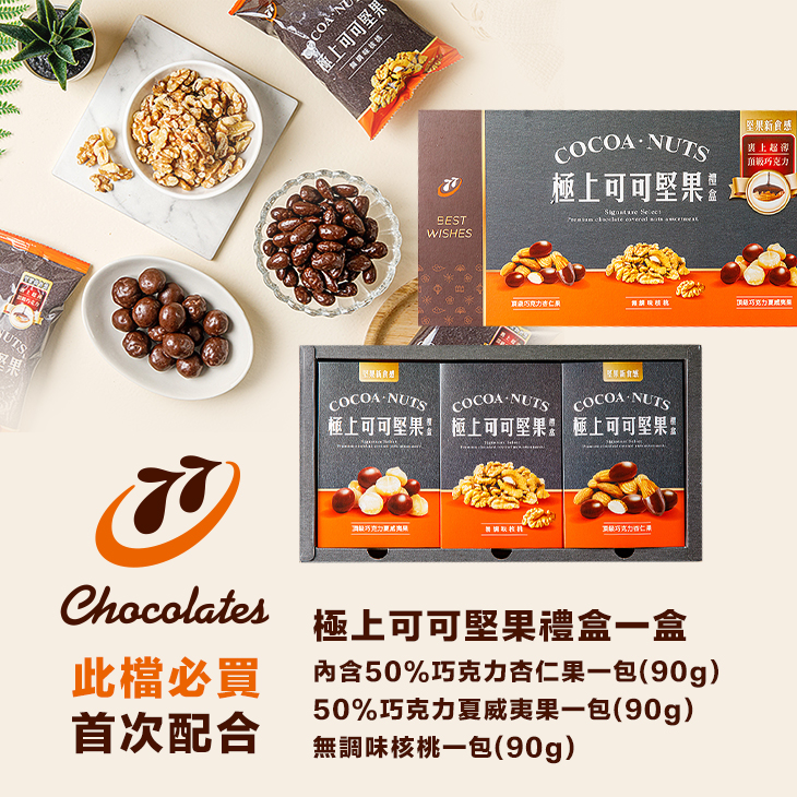 特別選用口感脆香、兼具美味與健康的堅果,薄裹上風味更加醇厚、香濃的頂級巧克力,微甜不膩的美味,完美融合了堅果與可可的香氣,帶來有別於市面,全新的食感饗宴!