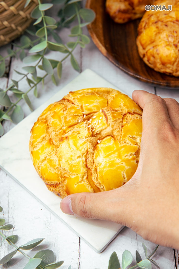嚴選新鮮原料製成,金黃酥香的菠蘿麵包,內裡加入香甜濃郁的特製餡料,一口咬下,甜而不膩,帶有迷人的奶香味,讓人忍不住一口接著一口,欲罷不能、直呼幸福!拿來當作早餐或午茶點心享用都很適合唷!