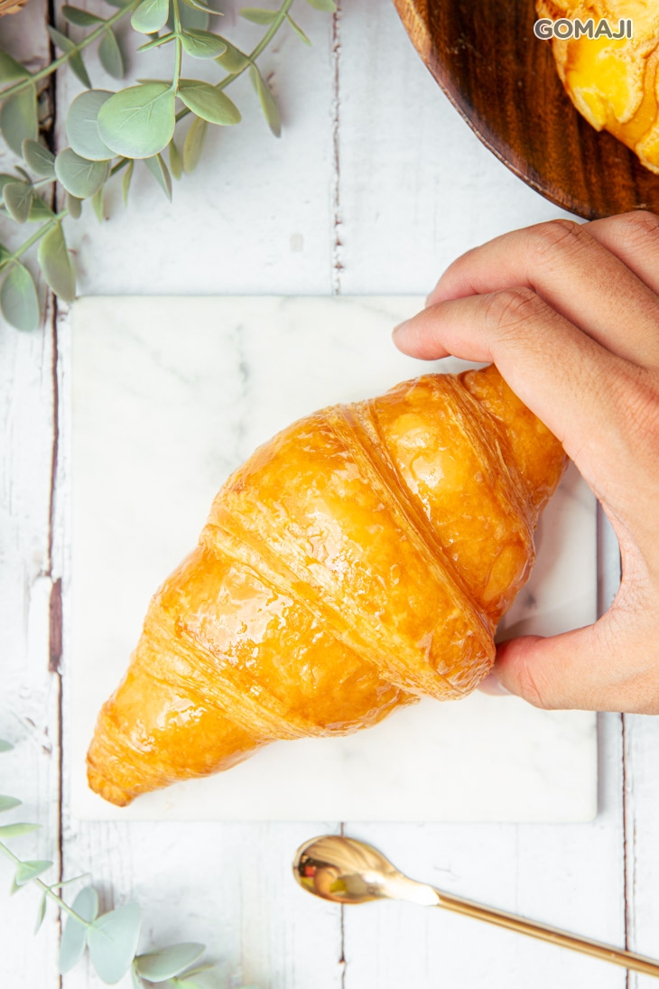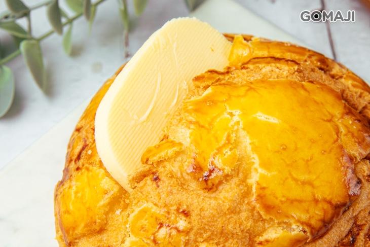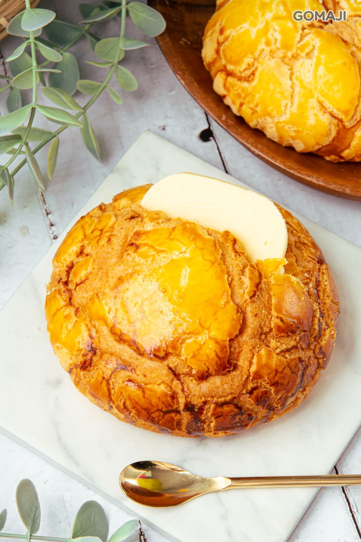 金黃酥香的菠蘿麵包,中間夾入一塊純香濃郁的冰涼奶油,一口咬下,冷熱交替的口感中有著菠蘿麵包的脆酥及奶油的入口即化,淡淡甜香的麵包香和奶油略鹹的風味一拍即合,共譜出絕妙好滋味,讓人愛不釋口呢!