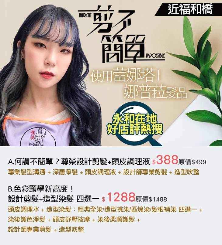 B.色彩顯學新高度!設計剪髮+造型染髮 四選一