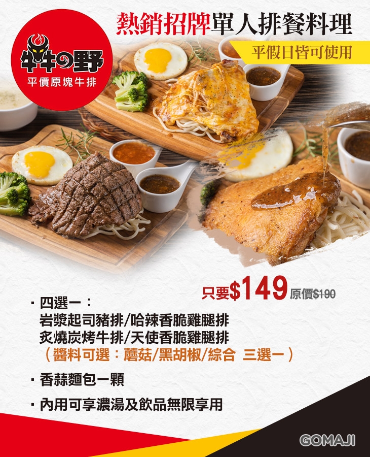 為您獻上店家的熱銷精選~《犇の野平價原塊牛排》秉持著誠信為本的經營理念,以經濟實惠的價格、用料實在的餐點將最新鮮的野味端上桌與饕客共享,憑藉著精心調配的獨特醬汁與秘製醃料成功征服無數味蕾,口碑爆棚、百吃不膩的經典美味等待著您細細品味!
