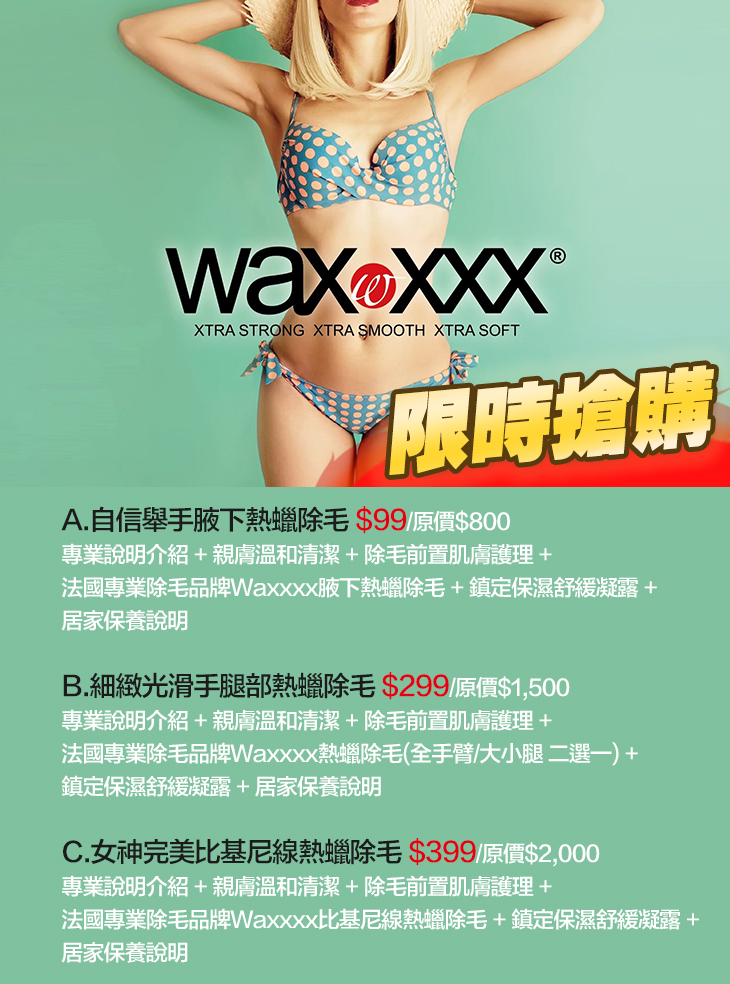 法國專業除毛品牌Waxxxx熱蠟除毛(全手臂)