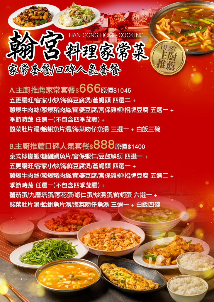 嚴選優質肉品與新鮮食材,透過主廚精湛的手藝,料理出一道道色香味俱全的家常料理,讓您彷彿回到家一樣自在舒適,享用各種經典的美食佳餚。店家提供的菜色選擇豐富、多元,肉類、海鮮、時蔬料理以及湯品等應有盡有,滿足全家大小的味蕾需求,相當適合家庭親子聚餐、朋友同事聚會的好場所喔!