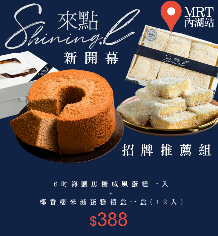 位於內湖區成功路四段上的【Shining Lee來點烘培】,提供各式蛋糕甜點,品項多樣、選擇豐富!在餐點的製作上,嚴選品質上好的食材,認為健康、自然的味道就是好味道,不只很用心還充滿了手作溫度,只為帶給顧客不同的美味驚喜,讓每個人都能吃得健康、安心、無負擔。心動不如行動,現在就依個人喜好選擇喜歡的蛋糕口味吧 ~ 無論作為禮物送給心愛的人,或是當作午茶點心都很合適唷!歡迎您來這裡感受幸福溫度、健康美味!♥