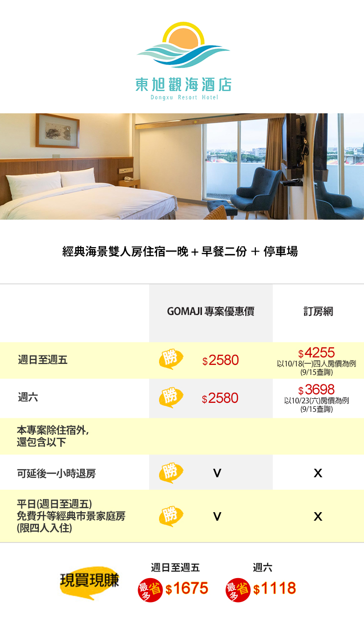 【花蓮-東旭觀海酒店】感謝麻吉們熱烈搶購,已全數賣光光。