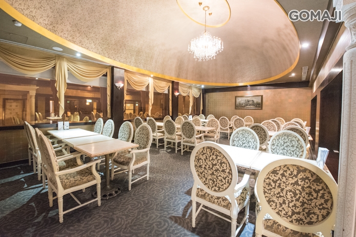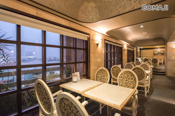 用餐環境以典雅、富麗的歐風設計為主,天花板及地板的花紋壁貼配上微微黃光,給人現代古典的用餐氛圍。匠心獨具的開闊玻璃帷幕融合植栽綠意,精心設計出舒適的用餐環境,讓人彷彿搭乘時光機般穿梭至不一樣的時空情境,溫馨、浪漫又愜意!
