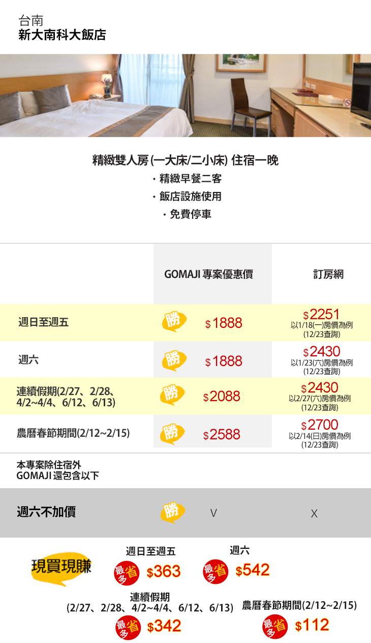 ★ 週六不加價!連假、農曆春節可享優惠加價使用!手刀搶房趁現在!