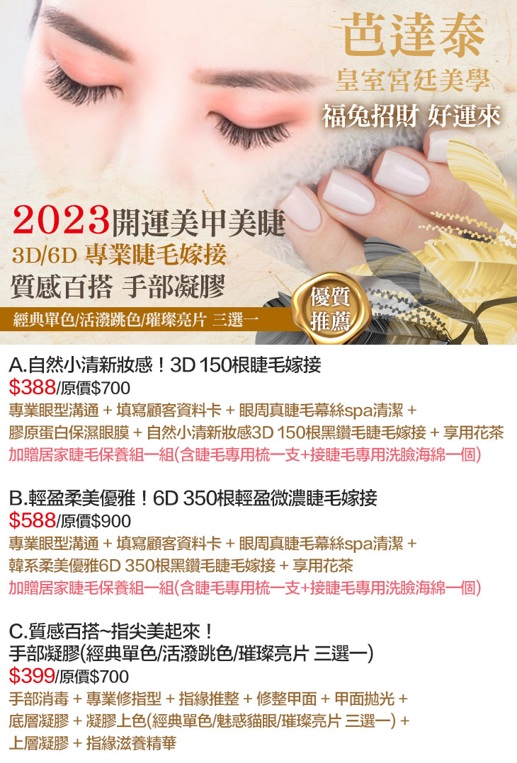 〈專業眼型溝通 + 填寫顧客資料卡 + 眼周真睫毛幕絲spa清潔 + 睫毛嫁接 + 享用花茶〉加贈居家睫毛保養組一組(含睫毛專用梳一支+接睫毛專用洗臉海綿一個)