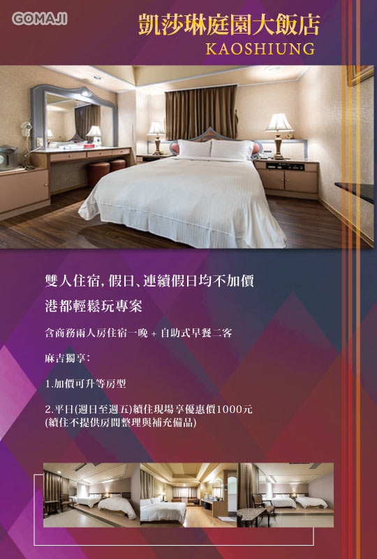 【高雄-凱莎琳庭園大飯店】感謝麻吉們熱烈搶購,已全數賣光光。