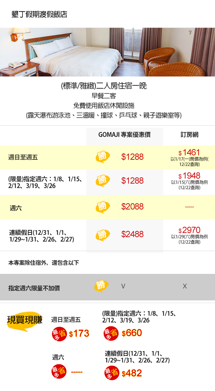 【墾丁假期渡假飯店】感謝麻吉們熱烈搶購,已全數賣光光。