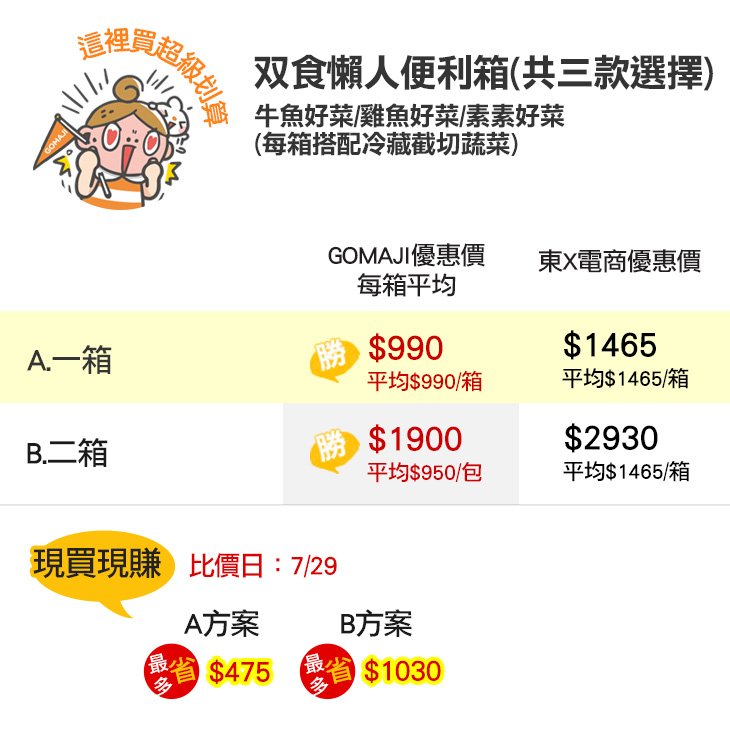 双食懶人便利箱(共三款選擇):牛魚好菜/雞魚好菜/素素好菜(每箱搭配冷藏截切蔬菜) 1/2箱