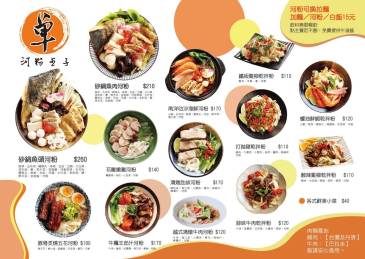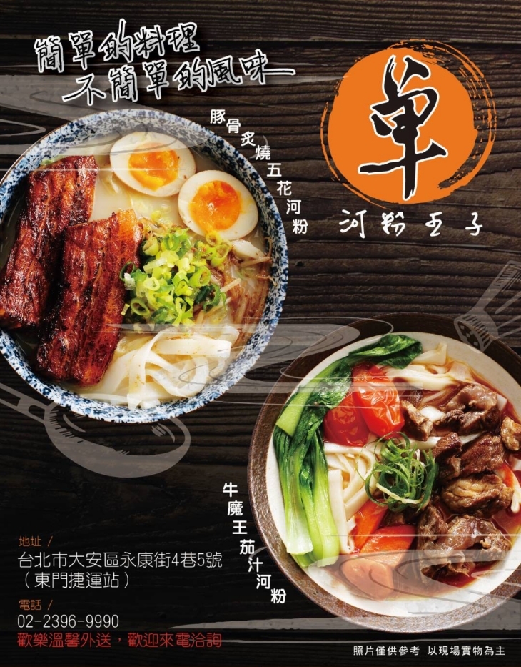 主打河粉料理的【單 河粉王子】,將您我常見的河粉,融入不同的食材烹調,料理出口味新穎、多樣的河粉,反轉您以往對河粉的印象,帶來全新的味蕾體驗!精選食材,經由店家巧手烹調,每一道都是料多實在的經典之作!充滿巧思的料理方式,更是將河粉與各風味的魅力發揮得淋漓盡致,展現前所未有的不凡美味,保證您一嚐驚豔、一試成主顧!