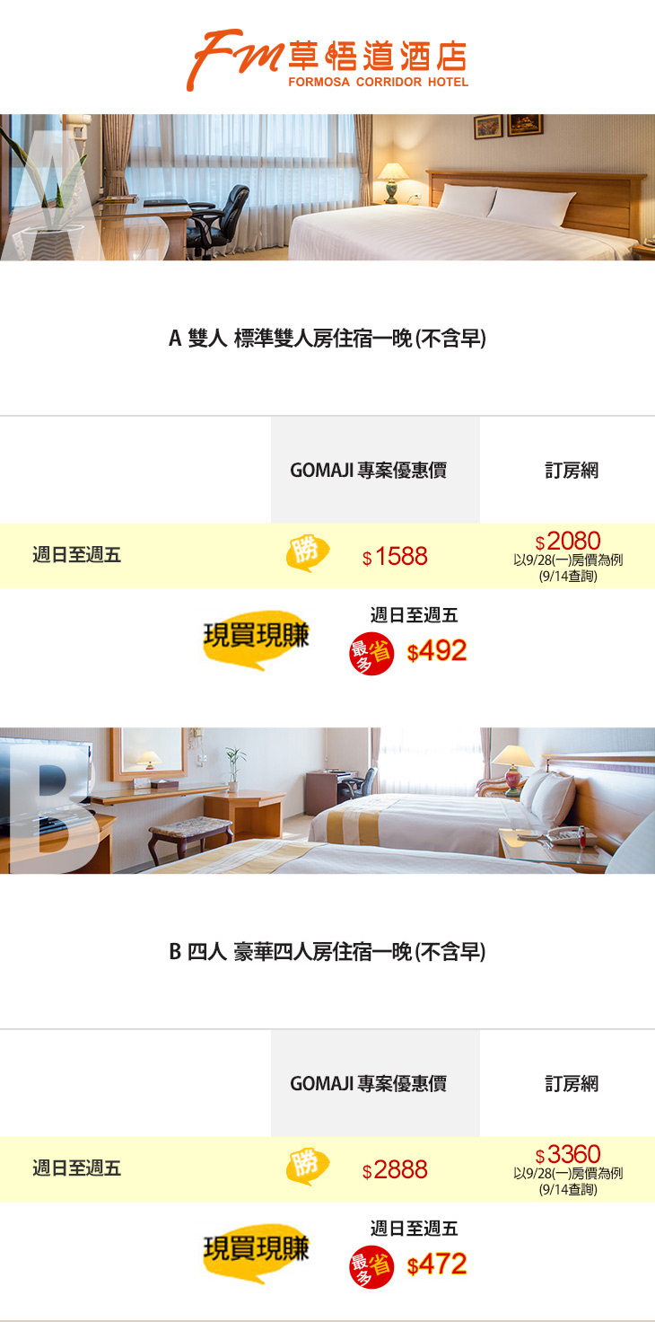 【台中-福爾摩沙聯盟草悟道酒店】感謝麻吉們熱烈搶購,已全數賣光光。