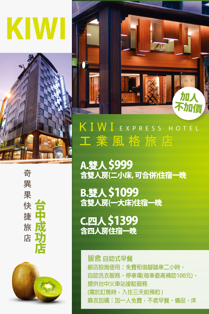 【台中-奇異果快捷旅店(成功店)】感謝麻吉們熱烈搶購,已全數賣光光。