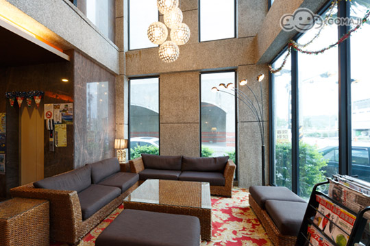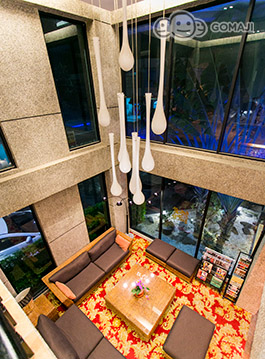 挑高二層樓高的休息區有大片採光玻璃使光線穿透。☆★