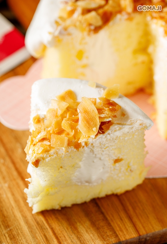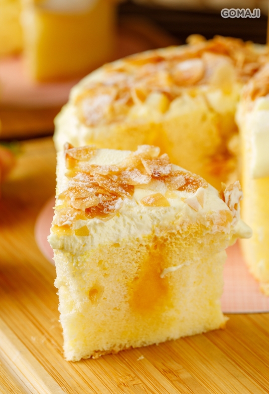 成份:超柔蛋糕粉、新鮮雞蛋、四葉十勝奶霜、法國冷凍芒果泥、芒果糖漿、卡式達粉,法國海鹽、上白糖、美國杏仁片
